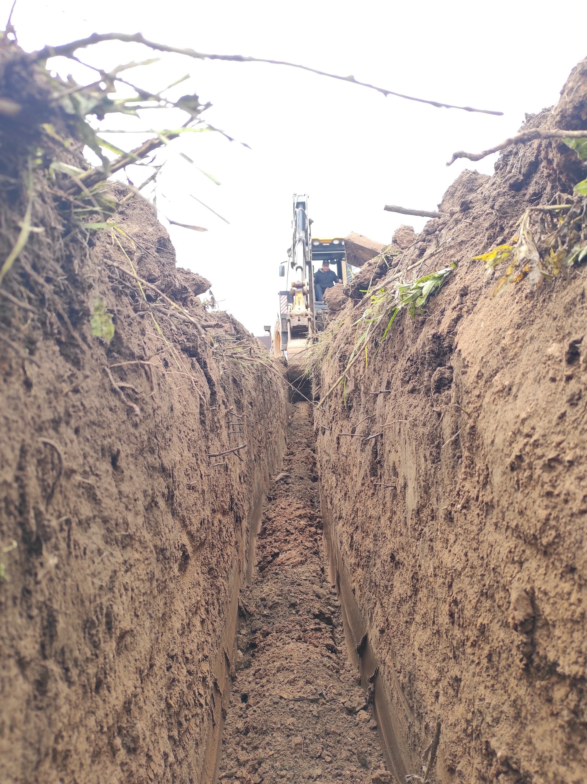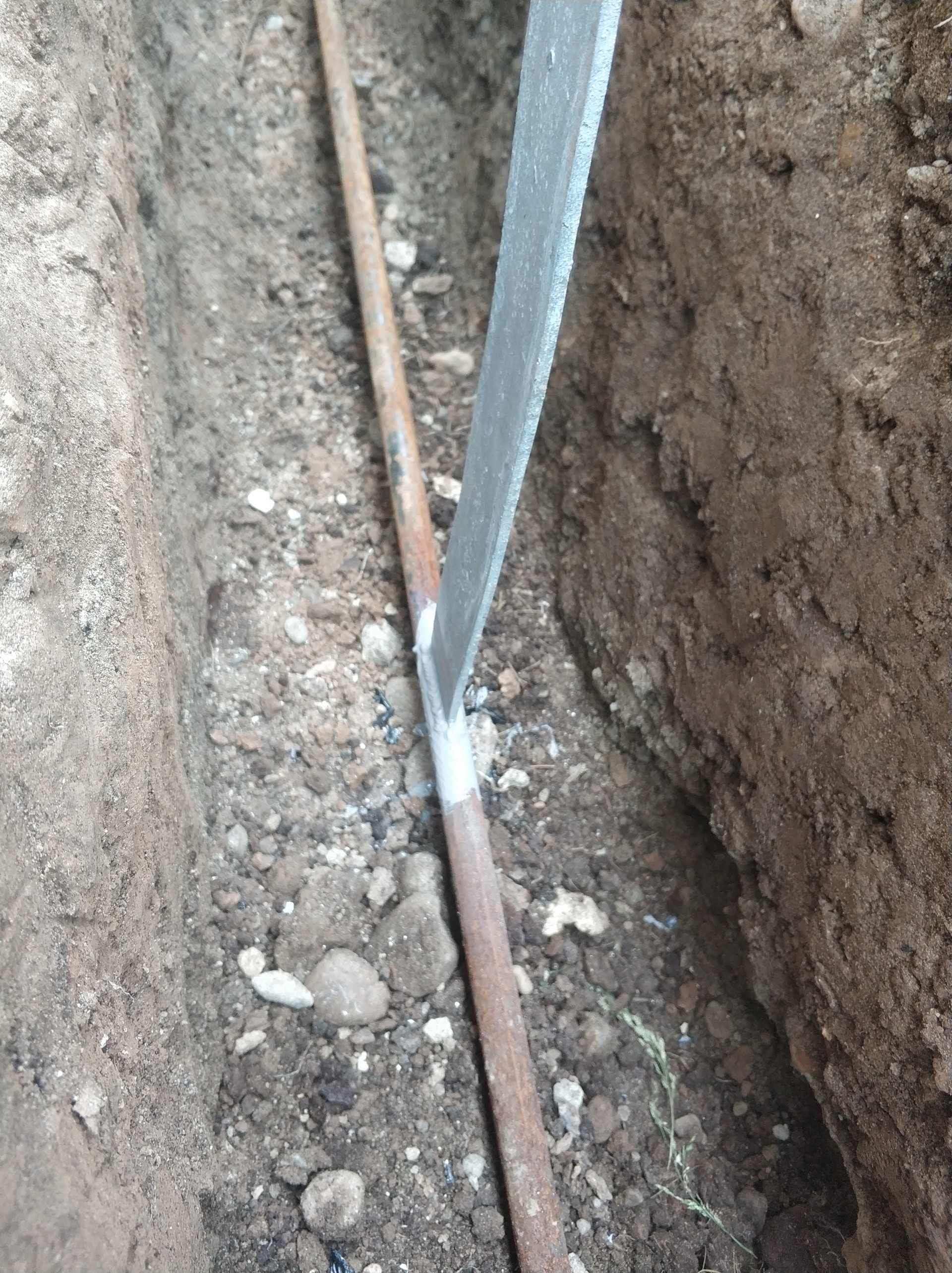 Прокладка питающего кабеля под землёй от опоры до будущего электрического щита в доме.