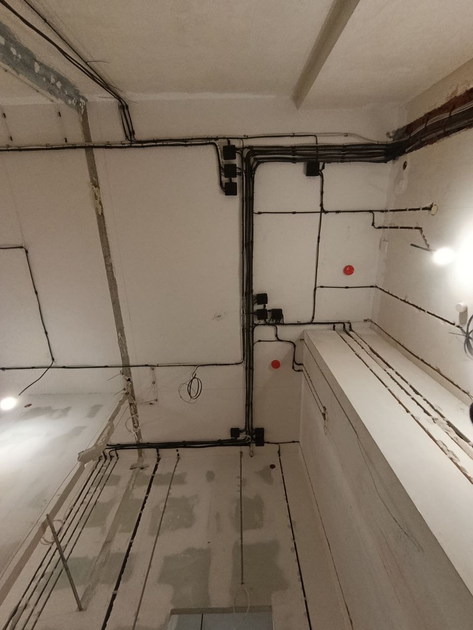 Выполнены черновые электромонтажные работ в соответствии с дизайн-проектом. Следующий этап после выполнения черновых строительных работ.